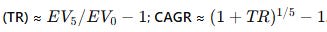 Revenue growth: the 5-year Rev factor = (1+g)^5